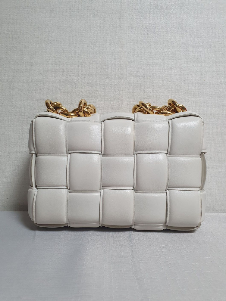 보테가베네타 카세트 패딩 체인백입니다. 초크 컬러 토트백 타입으로 바로 사용 가능한 상품입니다. 정품 증빙 풀구성 포함되어 있습니다. - 품질보증서 - 구매 영수증 - 정품 감정 소견서 - 제품 소재 설명서 - 더스트백 전반 컨디션 무난하며 상태 및 디테일은 사진 기준으로 확인 부탁드립니다. 원하시는 각도/디테일 사진 요청 시 추가 촬영 가능합니다. [사이즈] - 약 23 x 16 x 5cm ▶ 중고 상품 ▶ 단순 변심·개인 사유 반품 불가 ▶ 제주·도서산간 추가 배송비 발생 사진 확인 후 바로 구매하셔도 됩니다.