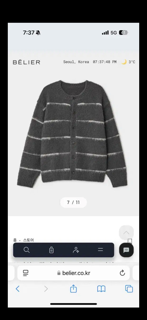 벨리에 품절대란 그 가디건입니다 시중 흔한 도메 가디건처럼 심심한 회색무지가 아니라 스트라이프 디자인으로 벨리에 특유의 감도높은 디테일이 느껴지는 제품입니다 그레이쉬한 컬러에 브라운 한 방울 떨어뜨린 듯한 색감입니다. 새제품급 그 자체라 따로 사진은 첨부하지 않습니다 사이즈 : 5 (105 사이즈감) 상태 : 1회실착 새제품 급 010 9246 3191 편하게 연락주세요