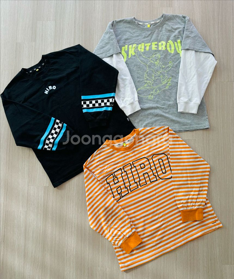 히로 긴팔티 일괄 보내요 140사이즈 블랙 체커티 손목부분 프린팅이 살짝 까짐 외엔(마지막 사진 참고) 전체 다 얼룩없이 깨끗합니다 일괄 반값택포 3.5