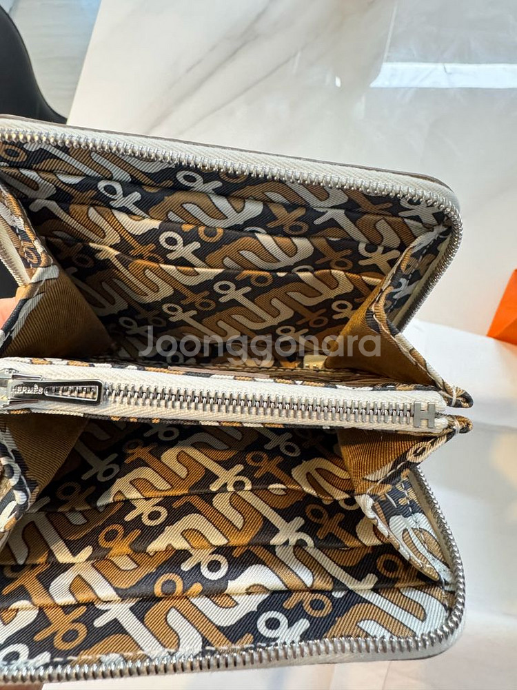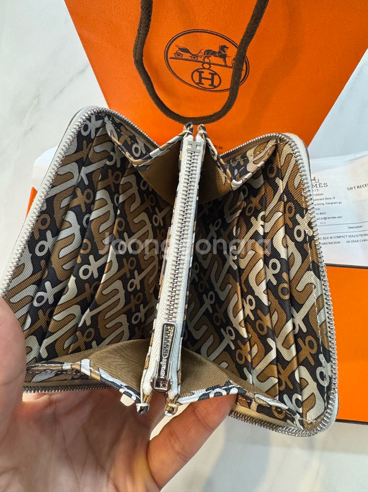 에르메스 실크인 컴팩트 지갑 크림색상입니다 25년 7월 압구정 현대에서 정가 구매 165만원 구매영수증포함 엡송 가죽 소재로 고급스럽고 예쁩니다 내부는 실크 안감이고 카드수납칸이 여러개 입니다 풀박스 새상품입니다 직거래선호 택배가능