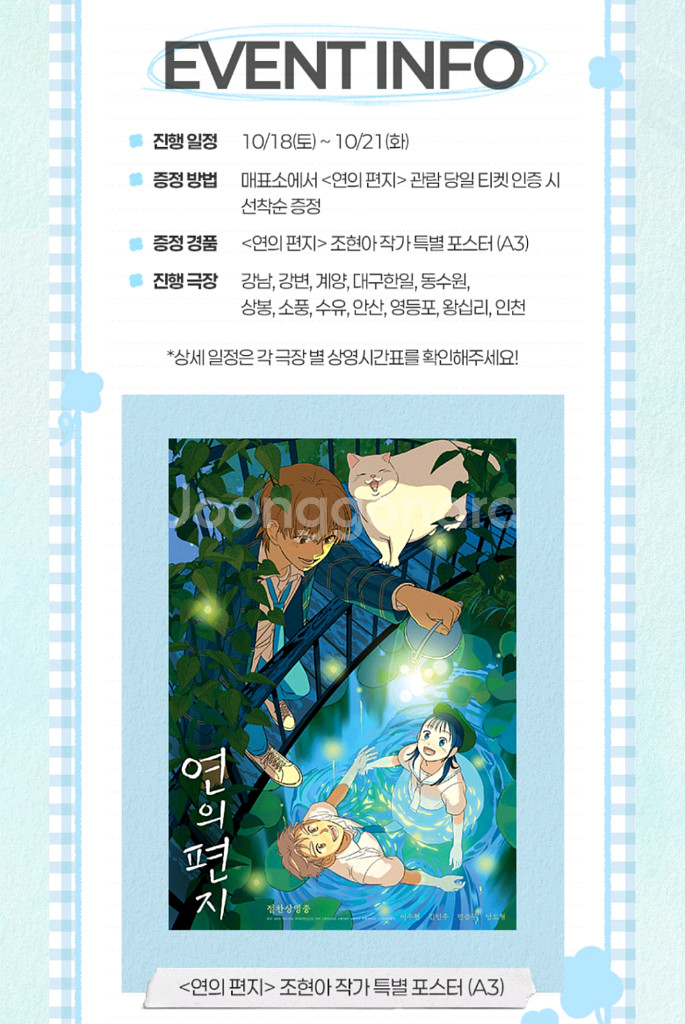연의 편지 조현아 작가 특별 포스터 A3 사이즈입니다 재고가 한개 남은지라 바로 안심결재 부탁드립니다 택배비 500원 추가시 전용박스에 펴서 배송해드립니다 상점 내 다른상품과 합배송 합구매 가능합니다 직거래 가능합니다 여러장 가능합니다