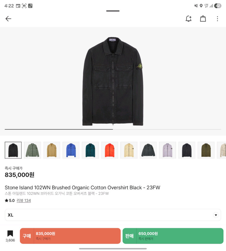 7915102WN-V0129 브러쉬드 오가닉 코튼 오버셔츠 블랙 색상 XL 23FW 제품입니다