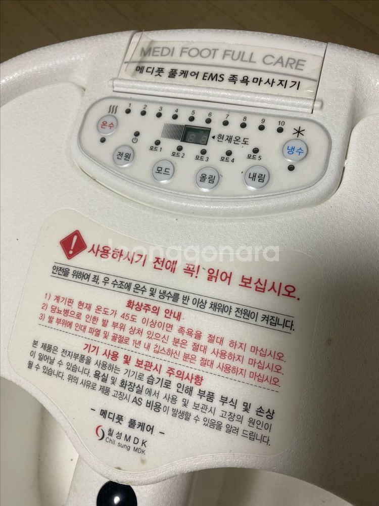 메디풋 풀케어 EMS 족욕 마사지기입니다 - 온도 조절 및 다양한 모드 선택이 가능합니다 - EMS 기능으로 발 마사지 효과를 높여줍니다 - 안전을 위해 현재 온도 45도 이상이면 작동이 멈춥니다 몇개월전에 쿠팡에 20만원에 샀는데 장거리 출장으로 인해 반값에 팝니다.