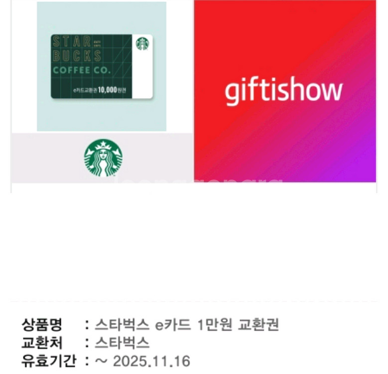 ▶상품명:스타벅스 e카드 1만원 교환권 ▶유효기간:~2025.11.16. 까지 등록 ▶중고나라 : 9,000원 💡 입금 확인 시 바로 바코드 이미지 전달드려요. 💰 계좌 이체, 안심결제 모두 가능