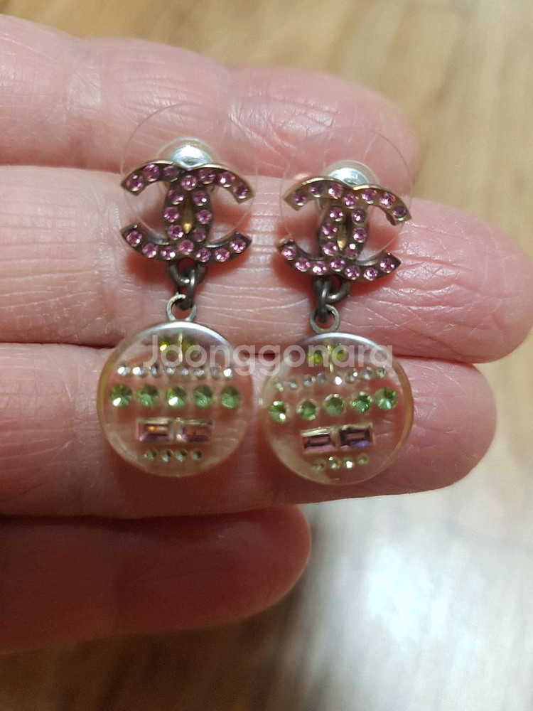 정품 샤넬 귀걸이. 단추로 리사이클링한 것 아닙니다. 샤넬 로고는 작은 편이고 아래 달린 장식이 반짝거립니다. 나이에 안 맞는 듯해서 정리합니다 정품인데 구성품은 없습니다. 각인도 없습니다. 아실만한 분들은 아시는 디자인이구요 받아보심 바로 정품인거 아실 겁니다. 아주 저렴히 내놓는다고 또 정품 문의 주시지 않으시면 좋겠네요. 아래 장식은 앞뒤가 똑같은 디자인입니다. 정품 검수도 가능하니 보증서 필요하신 분들은 번장에서 번개케어로 구매해주세요.