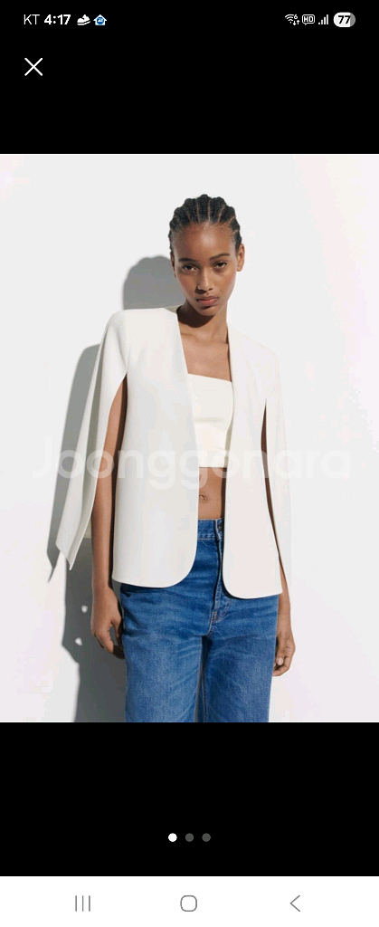 온라인에서도 안파는 제품입니다 온라인은 해외직구로 화이트만 구매가능하고 제가 판매하는 블랙은 온라인 구매가 없어요 일본 ZARA 매장에서 직접 구입한 제품입니다 온라인상에서는 화이트만 구매 가능하네요 사이즈는 44~날씬66 가능합니다 통통66 불가 기장은 164기준 딱 골반 위 정도 입니다 짧지도 길지도 않은 적당한 예쁜 기장이에요 하객룩으로 딱이에요 어깨라인 잡아줍니다 교환 환불 X