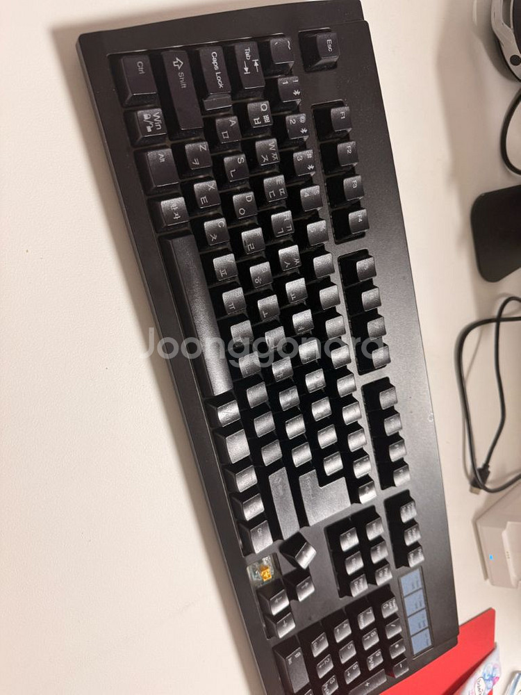 블랙 색상이고 USB-C타입 연결을 지원합니다. BT wired 2.4, Android MAC WIN 스위치 있습니다. 구성품은 본체랑 리시버 저소음 바다소금축이고 커버랑 미사용 케이블 하나 드립니다.