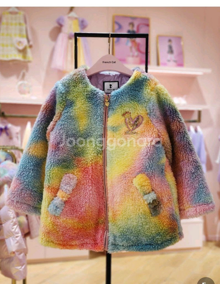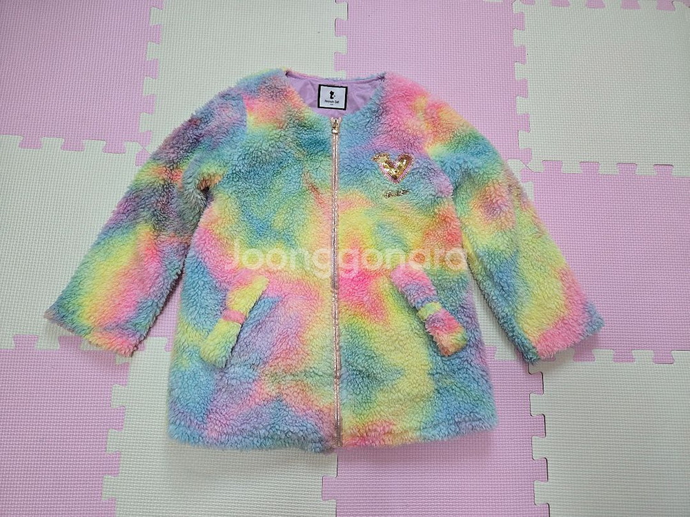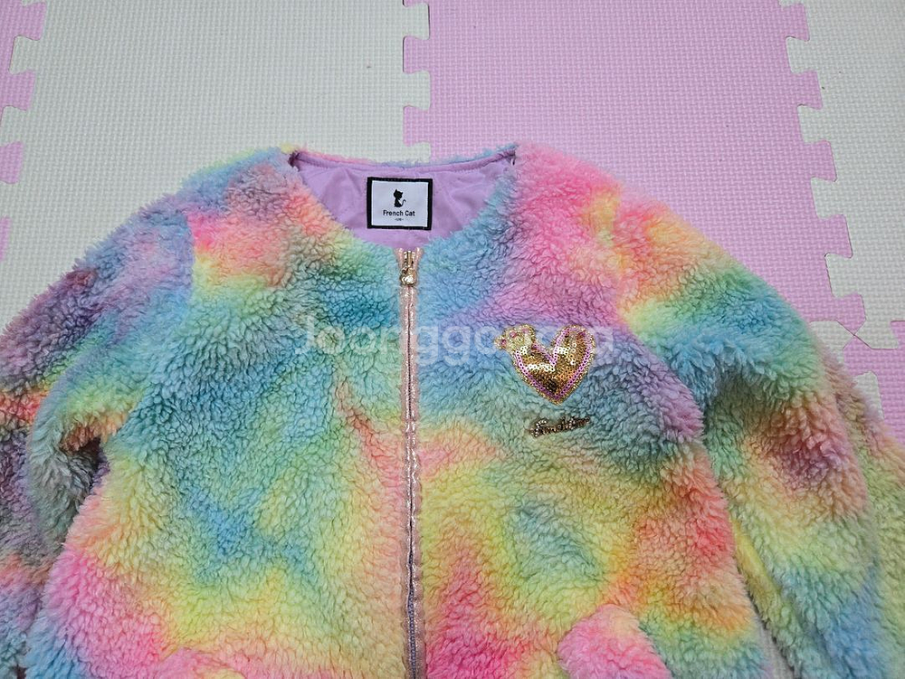 프렌치캣 여아용 뽀글이 자켓입니다 - 무지개색의 뽀글이 소재로 되어있고, 자수가 포인트입니다 - 부드러운 터치감과 뛰어난 보온성을 자랑합니다 - 130사이즈 상태좋아요 넘 이쁜옷이예요 착불입니다