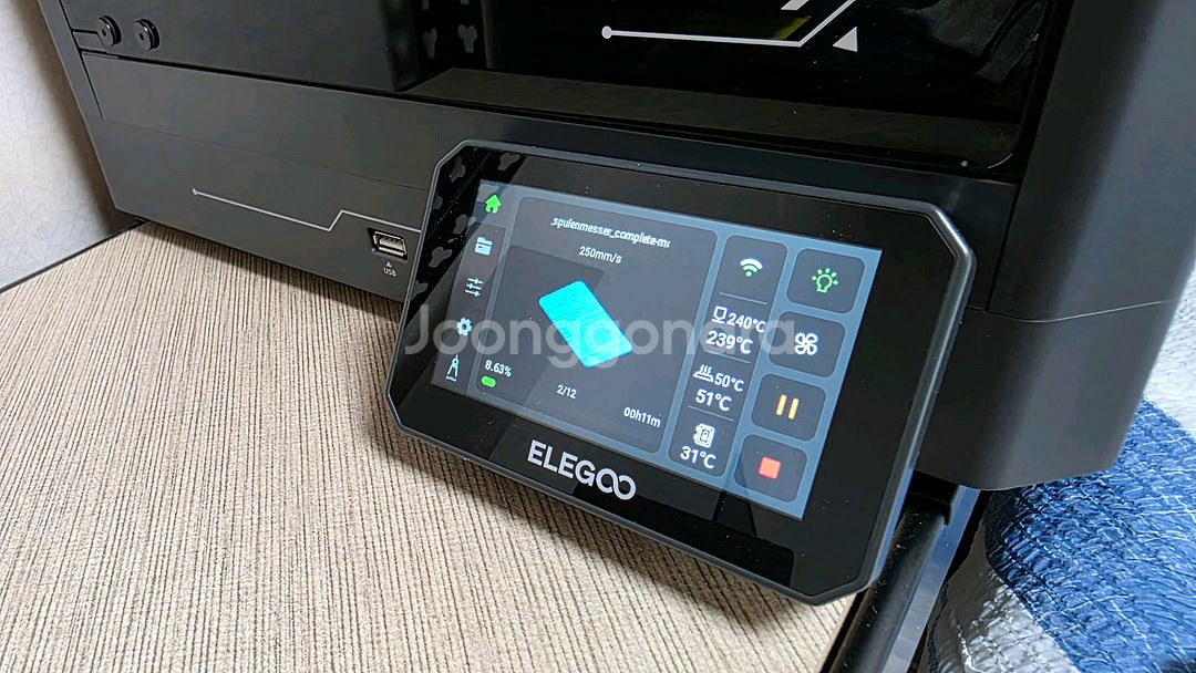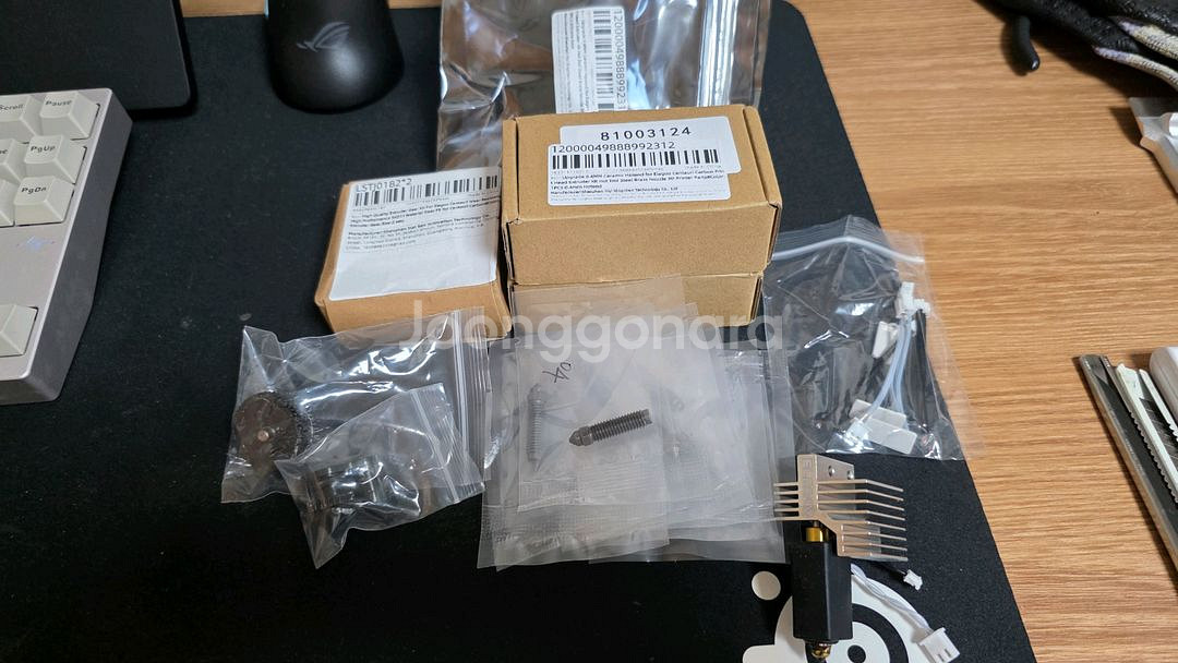 부피가 커 직거래만 신당역 근처 집앞에서 가능합니다 자차로 가져가셔야 할것 같습니다 국내 정식수입 제품이며 제조년월 2025/05로 AMS커넥터/LED 등 개선 제품입니다 총 출력시간 32시간 40분이며 기변예정으로 판매합니다 순정핫엔드와 노즐은 출력중 막혀서 알리 0.4mm 핫엔드 세트로 교체했고 정상출력 됩니다 익스트루더 기어도 알리에서 스틸로 구매 후 교체해두었습니다 채팅주시면 부품들 구매내역 스크린샷 보내드리겠습니다 핫엔드 세트/스틸 익스기어 교체 후 15분 테스트출력만 진행한 상태입니다 모든 구동축에 슈퍼루브 구리스 도포해두었고 정비편의를 위해 핫엔드/익스기어 분해에 필요한 나사들은 십자나사로 교체해두었습니다 핫엔드 실리콘커버 9개 0.4mm 핫엔드세트 1개 0.4mm 노즐 10개 세라믹히터+서미스터 3개 스틸 익스트루더 기어세트 1개 상단 유리거치대/똥통 등 출력품(PLA CF) 켁셀드 K5 PLA CF 800g PTFE 튜브+필라 센서 연결어댑터 출력물(건조통 미포함) 구성품들이며 포장박스만 제외한 모든구성품 포함입니다 공장초기화 후 셀프보정 진행해두었고 설치하시고 보정 한번 해주시면 바로 출력가능합니다 정상출력 확인 후 판매진행하니 추후 발생하는 문제는 직접 해결해주셔야 합니다 이로인한 반품/환불은 불가합니다 새제품이 아니므로 작은 까짐/기스들이 있을 수 있습니다