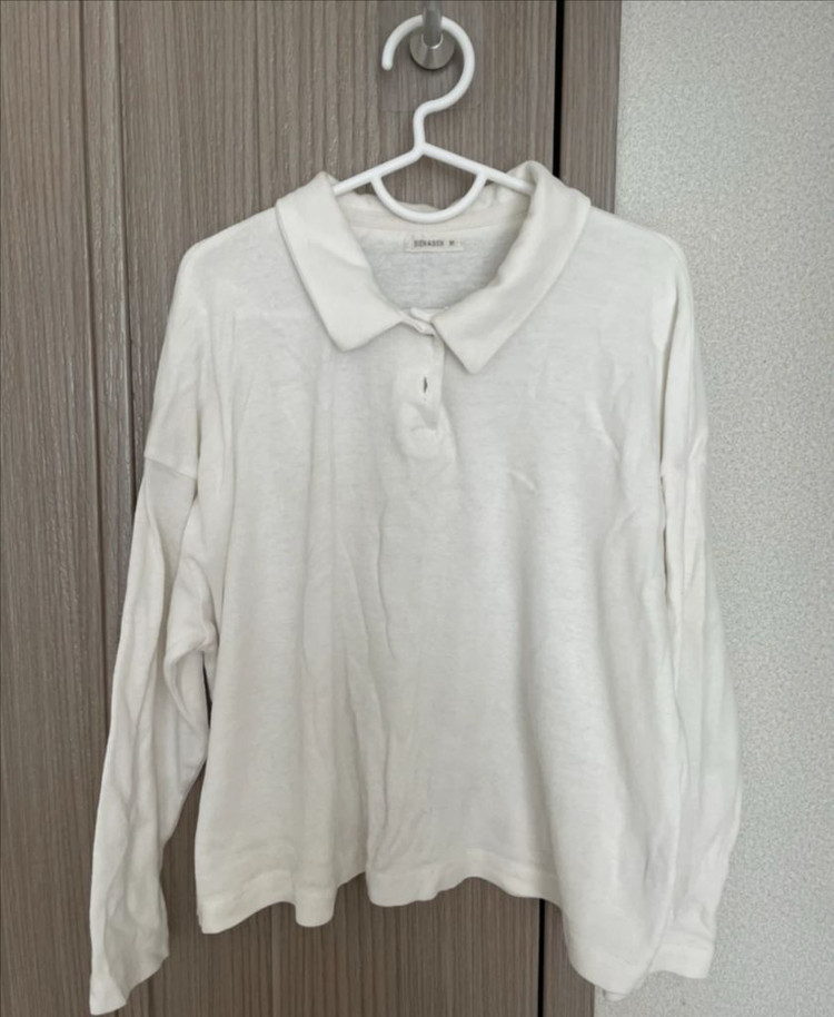 BIENABIEN 카라넥 긴팔 티셔츠입니다 사이즈는 M이며, 색상은 흰색과 네이비 두 가지가 있습니다 캐주얼하게 입기 좋은 디자인입니다 두개일괄판매합니다
