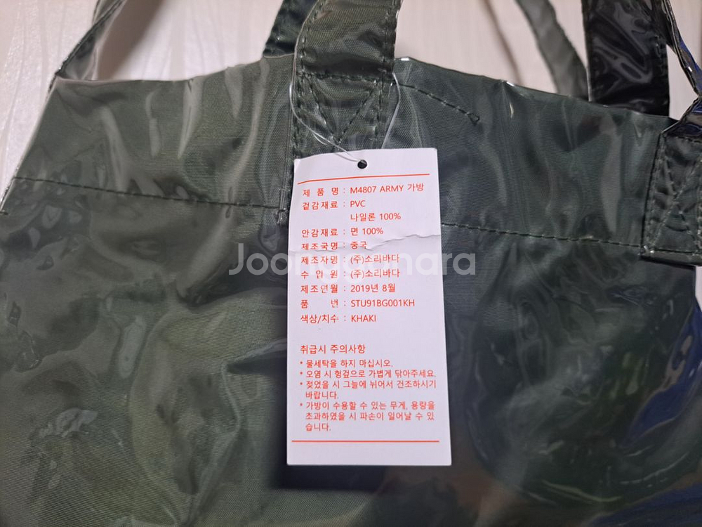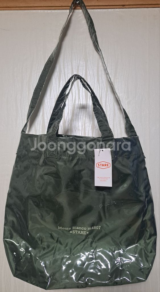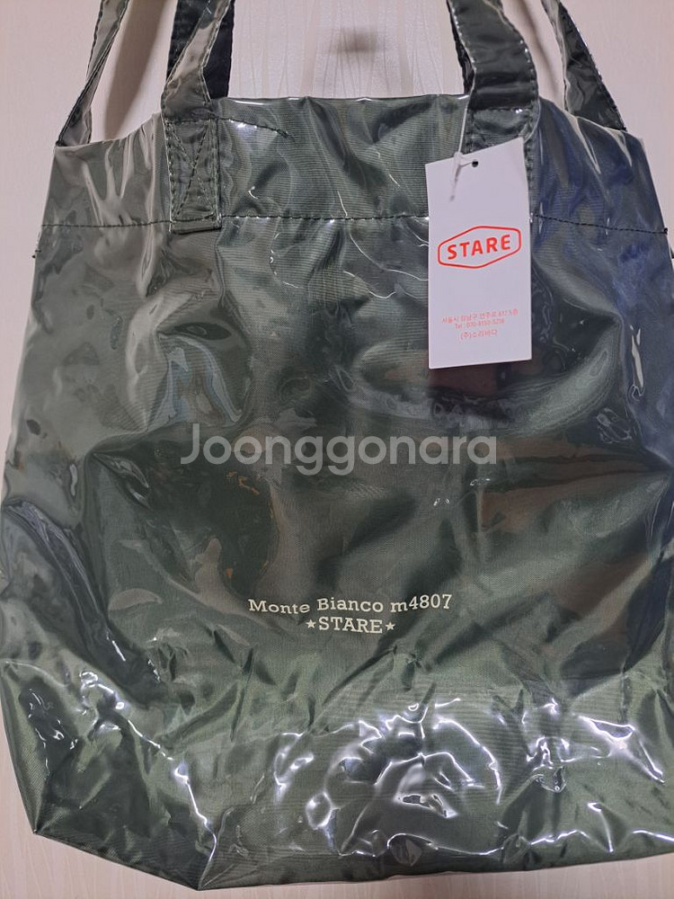 STARE MONTE BIANCO 토트백/에코백 카키/오렌지 : 택채 미착용 새제품. (바닥을 평평하게 핀 상태로) 높이 38 너비 35 옆면 10cm로 수납 공간이 넓고(납작하게 피면 훨씬 넓어짐), 겉면 튼튼한 투명 PVC재질로 럭셔리하며 방수도 가능. 남녀공용 디자인/컬러.