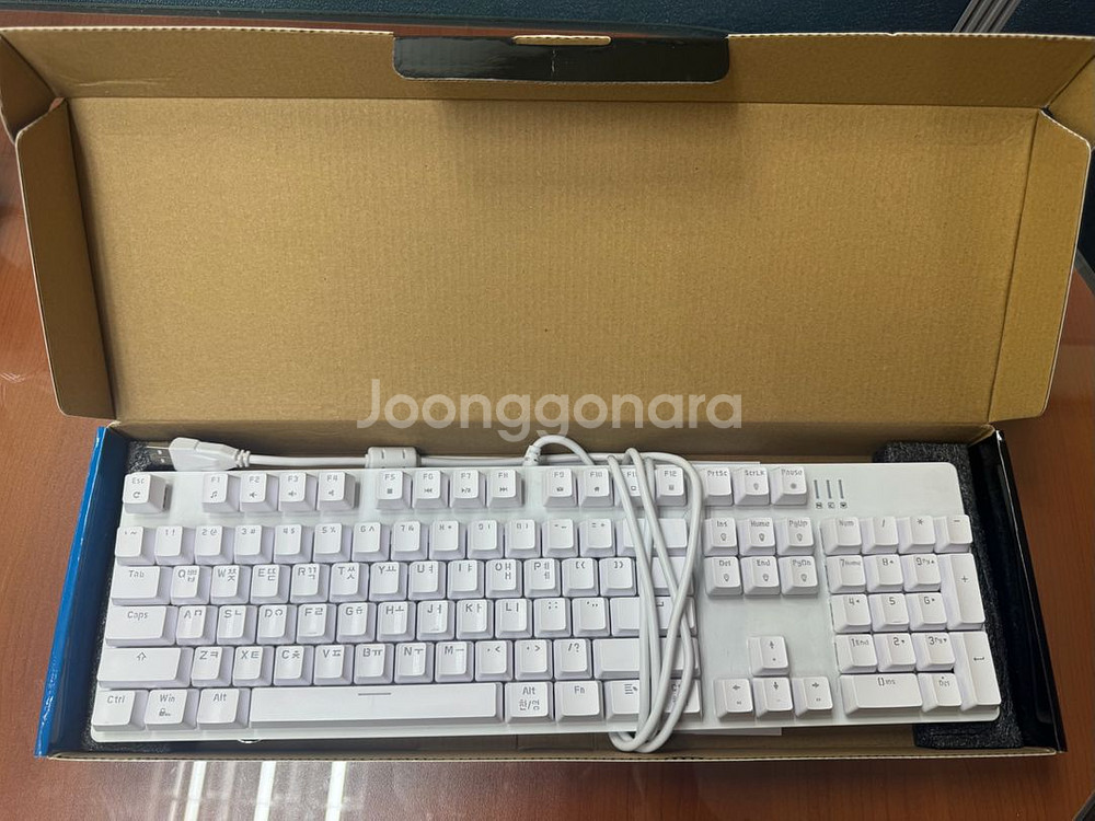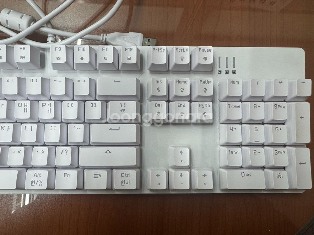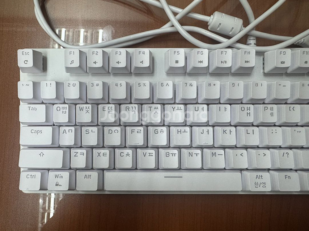 한성키보드 MKF30S PLUS 레인보우 게이밍 화이트 키보드 적축 약간의 사용감 있으나 고장, 파손 부위 없으며 정상 작동 문고리 가능, 택배 구매자님 부담