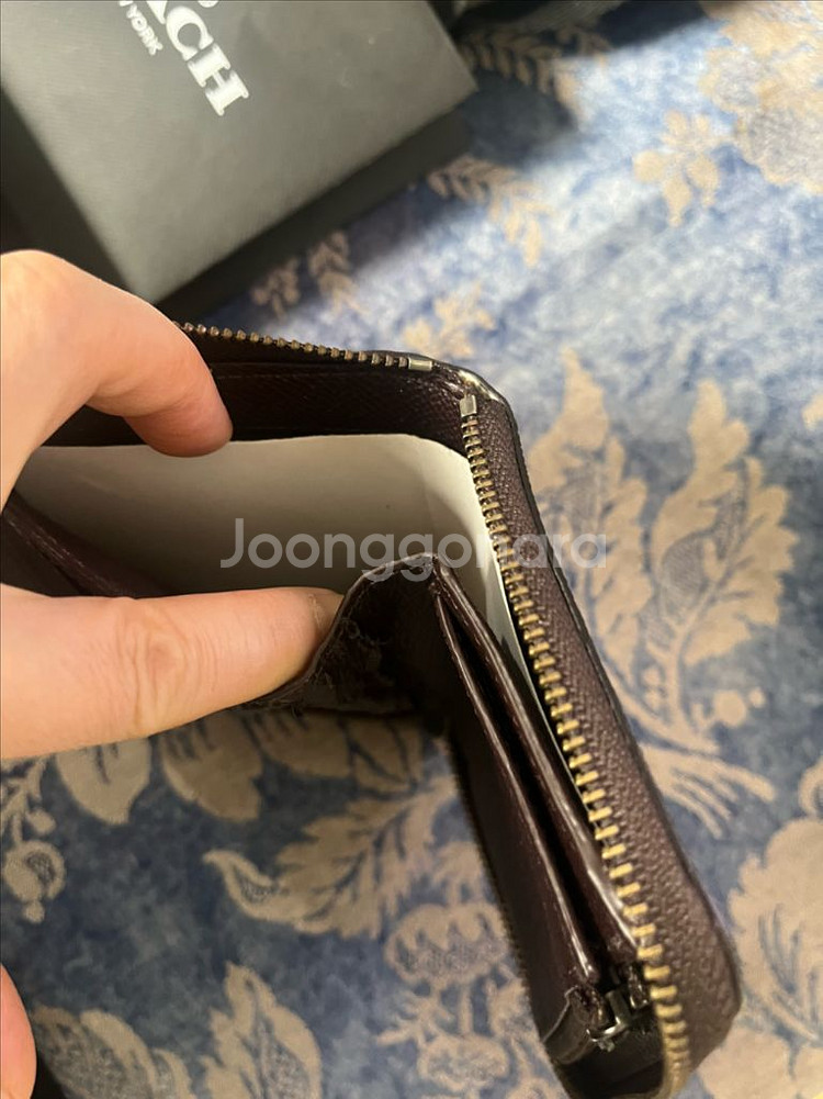 코치 반지갑. 새제품. 정품. 구매후 보관만했는데 오늘 보니 지갑 안쪽 내 피가 갈라졌네요. 사진 참조 저렴하게 판매하니 그냥 쓰시거나 수리해 쓰실 분 구매해주세요 쇼핑백 O 예민하신분들은 피해주세요 직거래는 압구정로데오역 7번출구앞에서만 (갤러리아백화점웨스트앞) 택배거래시 편의점반값택배 +₩2000 일반택배 +₩4000 정품 아닐경우 100%, 환불 그외에는 환불 X