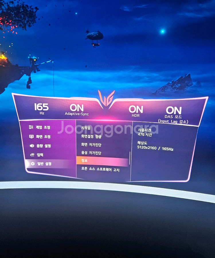 LG 울트라기어 45GX950A 게이밍 모니터 판매합니다. 5120x2160의 높은 해상도와 165Hz의 주사율 모니터 입니다. 사용 시간은 476시간으로 적고, 전체적으로 깨끗한 상태를 유지하고 있습니다. 25년 7월 16일 LG공홈 구입했습니다. 구성품은 모두 있지만 박스를 버려서 운반시 주의해 주셔야 하구여~ 동네 가까운 곳은 직접 배송 드리겠습니다. 연락 부탁드릴께요~