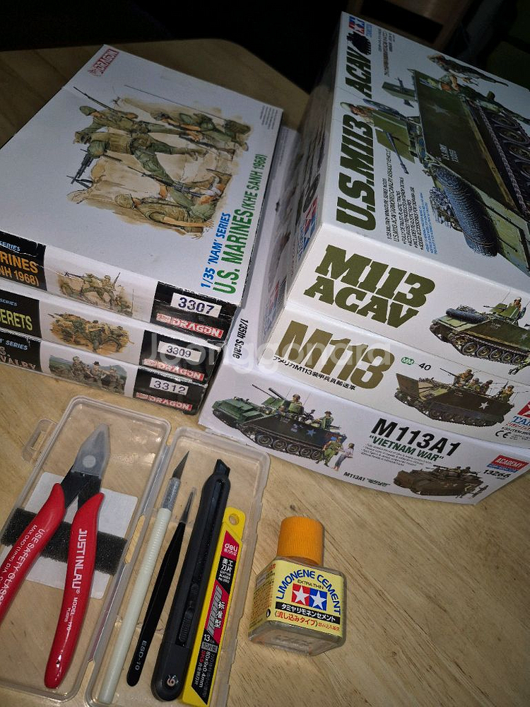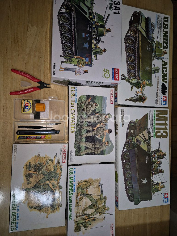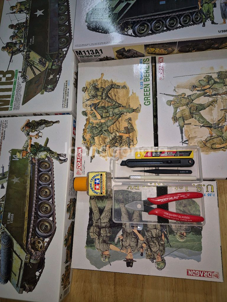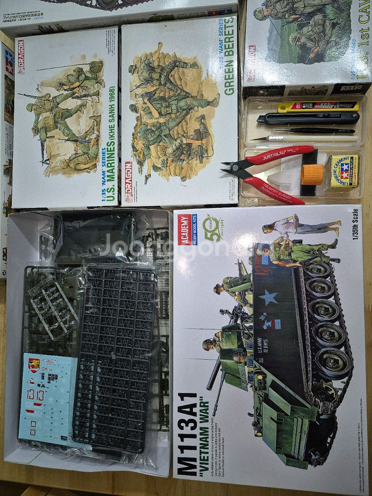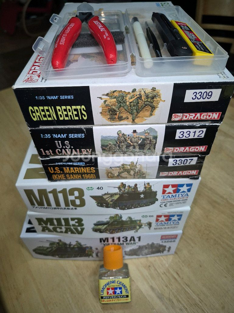 밀리터리프라모델(베트남전1:35시리즈*All새제품)타미야2종+아카데미1종+((드레곤보병셋3종은*25년된소장품~박스의구김,색바램있음))+타미야접착제+전용정밀니퍼+기본4종BOX셋(아트나이프,핀셋,정밀컷터칼,스페어컷터날x13셋포함)의*일괄판매*입니다. ((★각종교신가능(닌텐도스위치OLED박스셋or타미야RC카박스셋)하며*네고or 불필요한문의는 대화방 차단조치입니다.^^))