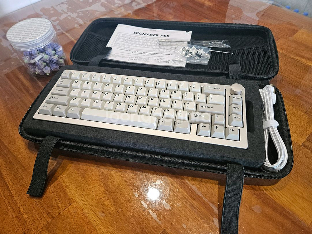 Epomaker P65 키보드 풀박스 판매합니다 -선물받은지 두달정도된 새제품급입니다 색상은 카키(샴페인 골드) - 65% 배열의 CNC 알루미늄 키보드입니다 배터리는 4000mah 입니다. - 유(1)무선(2) 3가지 연결 모두 지원하며, 메탈 노브가 있습니다 via 사용가능 -핫스왑 방식으로 다양한 스위치 사용가능 - 견고한 알루미늄 프레임으로 제작되어 내구성이 뛰어납니다 -사진속 가방은 따로 구매하여 사진처럼 보관했습니다 -구매시 가방(회색)도 드립니다. -모든부속품은 미사용이며 키캡도 다른것으로 장착했다가 다시 부착했습니다 - 눈에 띄는 기스는 없습니다 -제브라축이며 선명하고 단정한소리가납니다. 문의주세요. 직거래위주입니다.