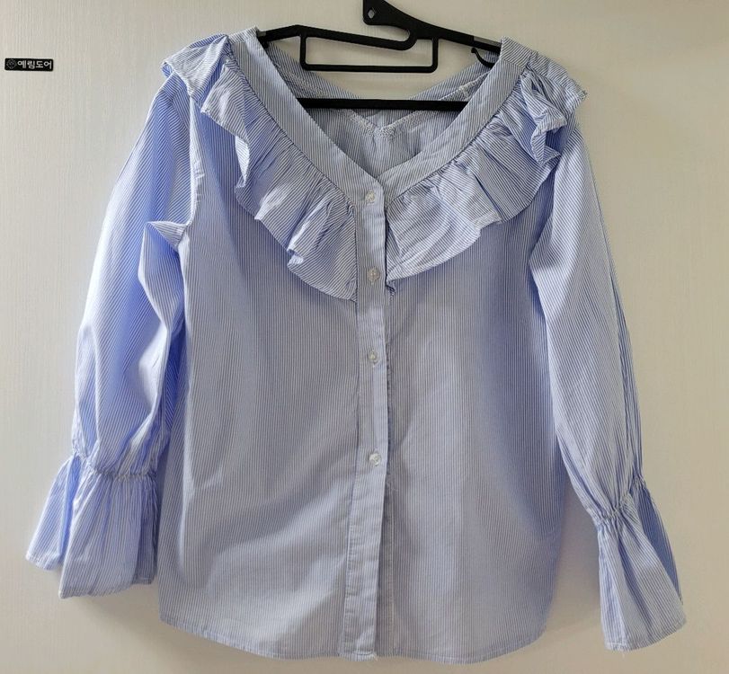 예쁜 셔츠에요 러플로 여성스러운 느낌의 셔츠 사이즈 프리인데 사이즈 조언 어려워서 실측 남겨요 어깨 45, 가슴단면 48, 허리단면 50, 팔 48 상태 좋아요 택배비 불포함이에요 일반택배시 4000원 gs반값택배시 1900원