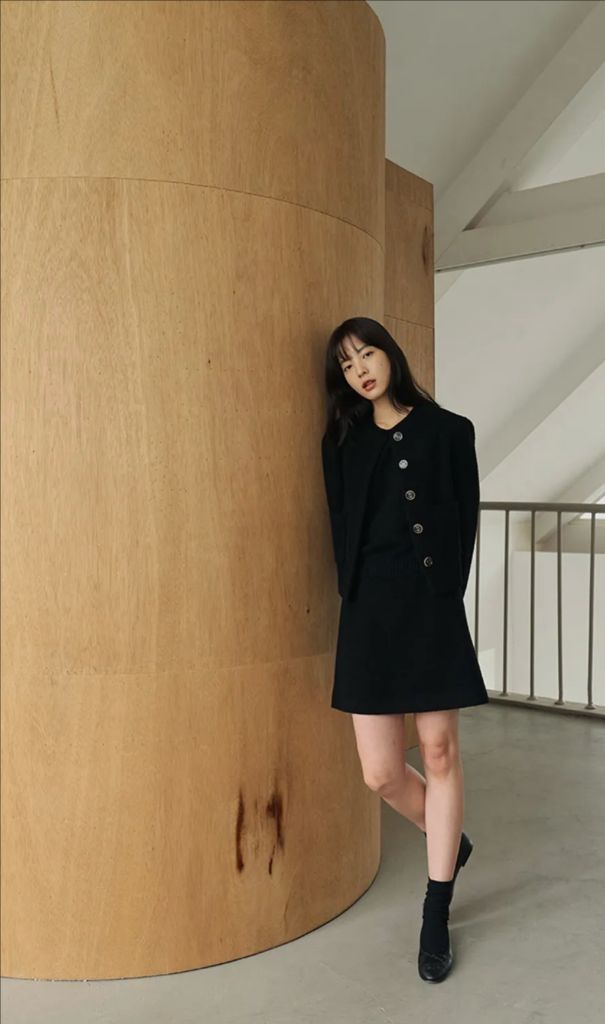 - 샵엠 두오모 블랙 색상 스커트 S사이즈 * 판매가 : 11만원대 두오모 자켓이랑 세트로 구매 후 스커트는 사이즈 미스로 착용하지 못했습니다. 새제품입니다. 부클 소재로 부드럽고 포근한 텍스처입니다.