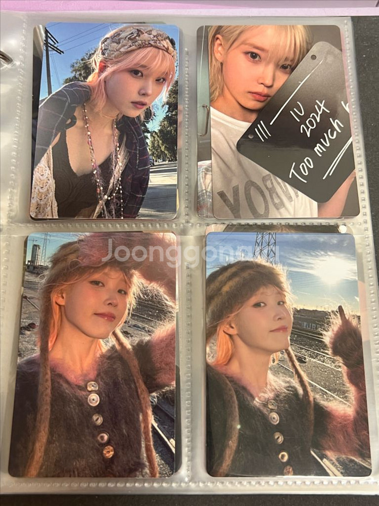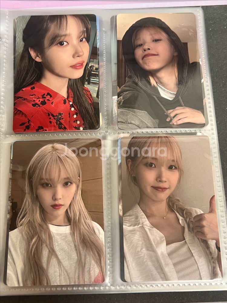 아이유 포카 판매합니다. 일괄 구매 우선 거래!! 앨범/유애나 공식키트/블루레이/시즌그리팅/전시회 혹은 콘서트 특전에서 받은 것들입니다. 사진이 10장밖에 첨부가 안되어서 (2)게시물 참고해주세요!! 개당 1천원인데 일괄로 구매 시 파격..네고 가능+HER 콘서트 포토바인더도 같이 제공합니다.