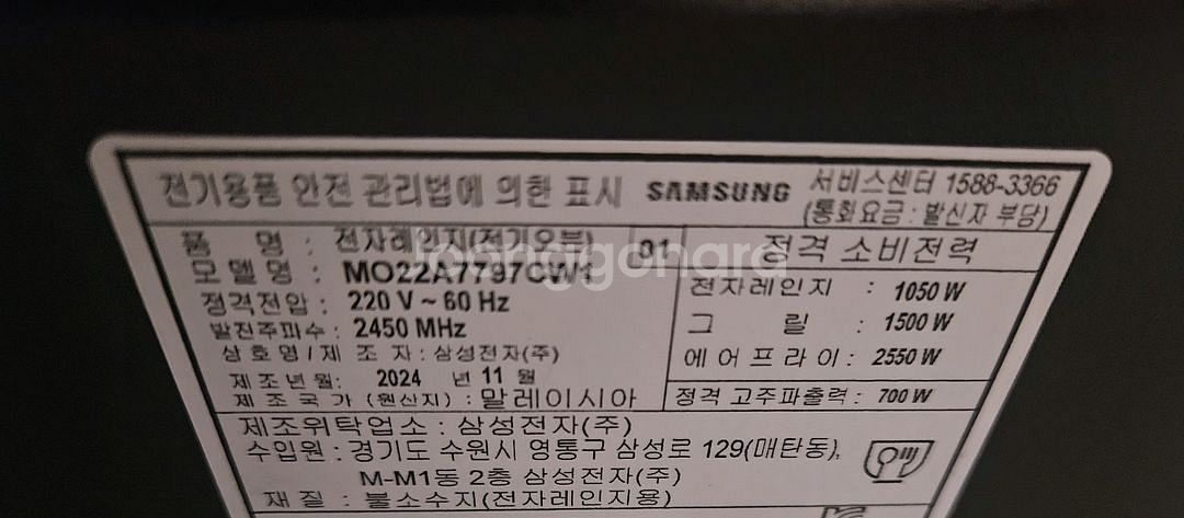 신혼때 구매하고, 집밥을 생각보다 안하게되어 내놓습니다 ㅎㅅㅎ;; 앞에 붙은 스티커는 마스킹 테이프로 흔적없이 띄어지는거에요! * 사용시 주의사항이라, 원하시면 띄어드립니다. 제조일자도 24년 11월로 비교적 최근이에요! 제품 특성상 직거래만 가능합니다. * 경기도 의왕시