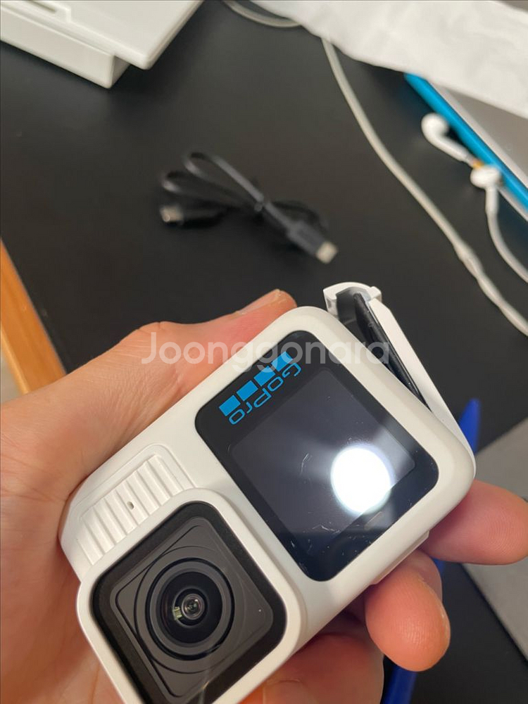 2차구매했어요. (북미제품) 사진의 구성품이 전부이고 박스 없어요 (충전선, 마운트, 정품배터리1, 본체) sd카드없어요. 전체적으로 깨끗합니다. 사진에서 보는 것처럼 전면 디스플레이 실기스 있어여. 후면 커다란 디스플레이는 깨끗합니다 마이크커버?에 찍힘 있어요 직거래 고양동입니다. 네고는 하지 말아주세요