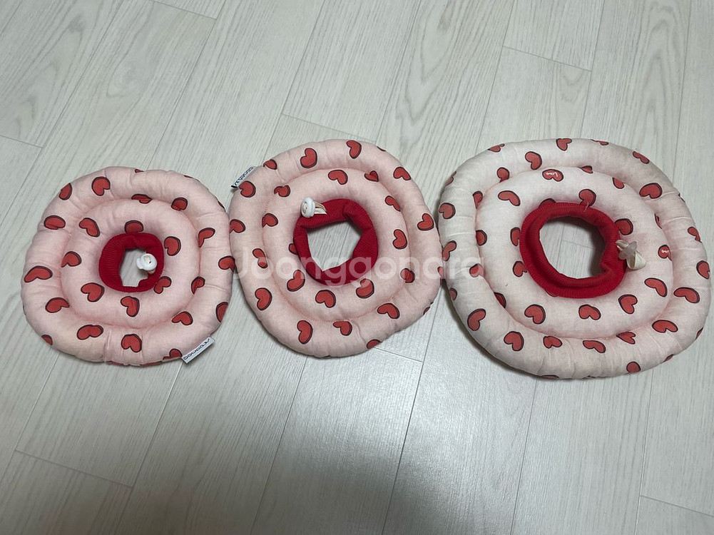 아이디어스 주문제작 상품입니다 사진상 색이 달라보이는데 세개다 색상 동일합니다! 현재 22000원정도에 판매중이며 저렴히 판매하고자 합니다 목둘레를 재시고 지름을 재주시면 됩니다 제일 늘렸을때 기준크기입니다 세번째 사진 참고하셔서 목둘레 재주세요 머리가 들어가야하니 사진처럼 재주셔야합니다 1번 5.5cm 2번 8cm 3번 10cm 입니다 옵션 추가로 사이즈 주문제작 라운드 박음 (세탁시 솜뭉침없음) 했습니다 개당 금액입니다 어린 강아지 고양이가 쓰길 바랍니다