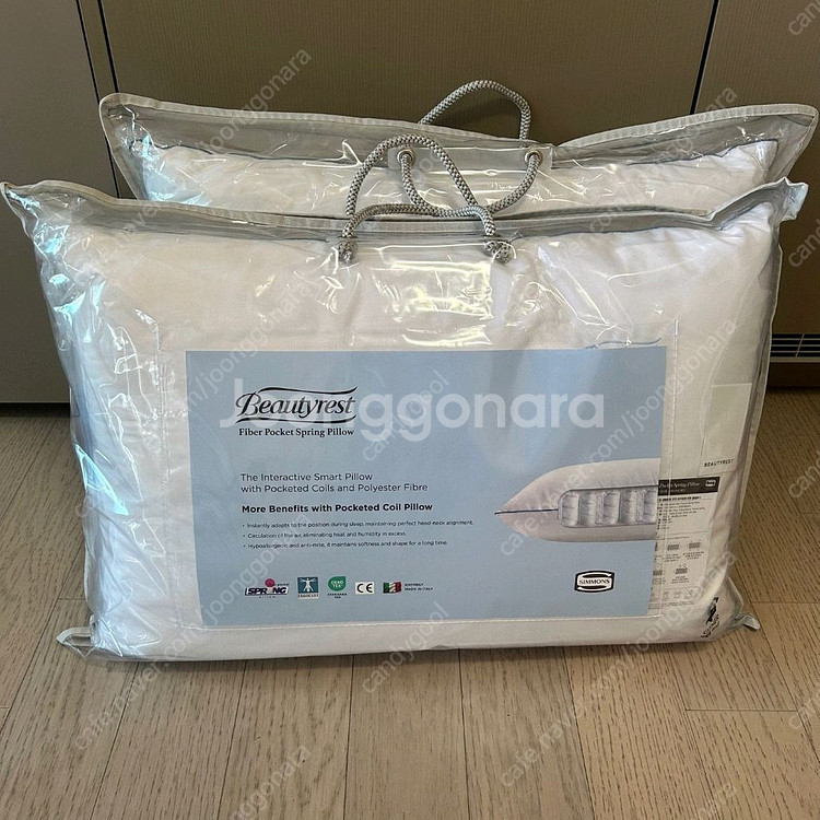 시몬스에서 매트 구매 후 사은품으로 받은 베개입니다. 2개 보유중이고 낱개 판매도 가능합니다.(낱개 판매시 개당 12만원) 인터넷 최저가보다 약 4만원 넘게 싸게 올렸습니다. 직거래는 강남쪽 가능하고 택배거래시 2개 다 구매하시면 택배 비용 제가 부담하겠습니다.
