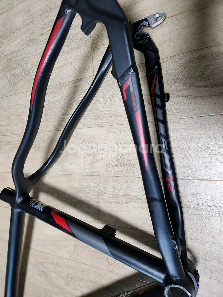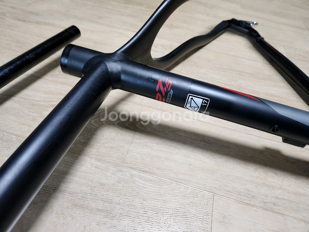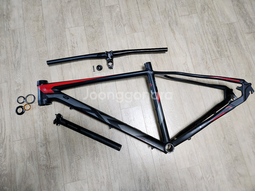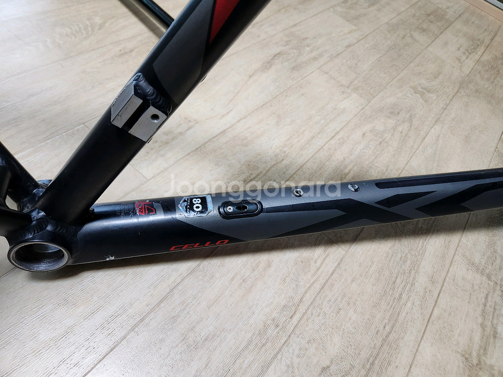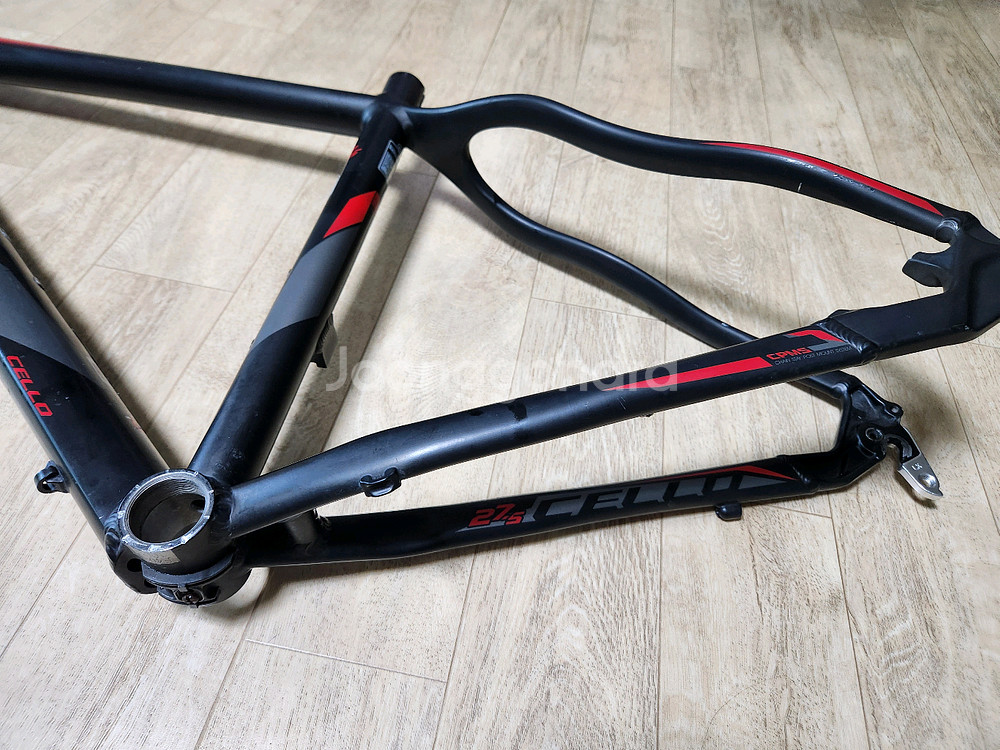 2016년 첼로 xc80 mtb프레임 세트입니다 당시 정찰가 280 만원의 고가 mtb였네요. 스무드웰딩으로 용접부위가 매끄럽고 케이블 내장 방식 이예요. 27.5인치, 리어휠은 QR방식, 프레임 사이즈는 17인치(적정170~180중반)입니다. 몇군데 까짐 있지만 전체적으로는 깨끗한 편이예요. 행어도 얼라이먼트 잘 잡혀 있어 변속에 이상 없었습니다. 혹 카본MTB라 바팡등 전기모터 달기 어려운분들 구입 하셔서 전기MTB로 만들기 좋을것 같네요 사진 구성품 일괄 입니다.