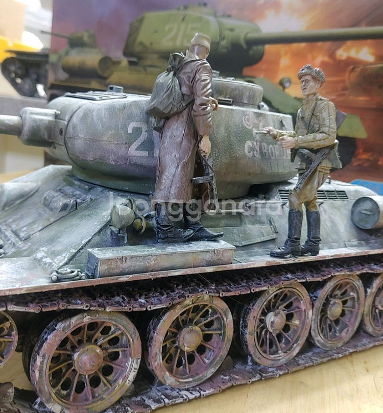 밀리터리프라모델(하비보스1:16디스플레이전용)대형*정밀모형~리얼한연결식궤도,개별쇽업쇼바재현~2차세계대전or한국전(러시아)T34/85전차★정밀도색~한정판전차병3명추가+전체웨더링,치핑,명암처리*에어브러시(1943년~크루스크전투)정밀도색작《유튜브👍헤이리영웅》동영상~공유중 입니다. ((★각종교신가능(각종RC카풀박스셋or 타미야1:16RC탱크,PS5디스크버전박스셋)하며*네고or 불필요한 간보기식문의는 대화방 영구차단조치입니다.^^))