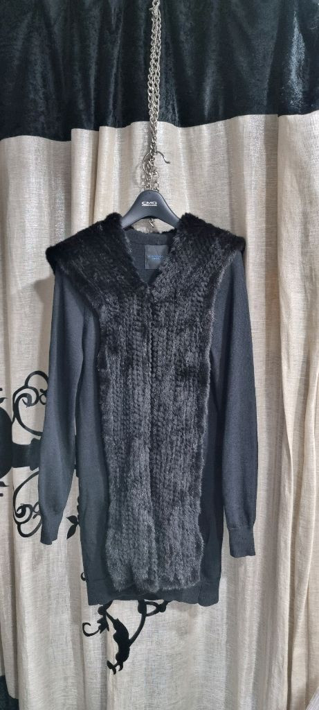 크레숑 후드밍크 가디건 모100% 밍크100%고급형 블랙.55사이즈 총장77cm. 가슴반품44cm 어깨32cm 팔길이62cm 착용감 적어 거의새거에 가까워요. 엉덩이 덮는 길이입니다. 교환 반품안되니 사이즈확인 하세요. 택배비는 3500원 있어요.