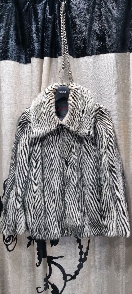 이상복 밍크 숏 점퍼 판매합니다. 독특한 지브라 무늬가 눈에 띄는 제품입니다. 82호로 44-55사이즈이고, 밍크상태 좋은 상태입니다. 카라부분 때탐으로 살짝 누런색입니다. 제가 있는곳이 밍크전문 세탁소가 없어 세탁을 못했어요. 세탁하셔야 합니다. 교환 반품안되니 확인하세요. 100%밍크로 풀짚업 점퍼스탈 입니다. 총장59cm. 가슴반품48cm 어깨40cm. 팔길이56cm 택배비는 3500원 있어요.