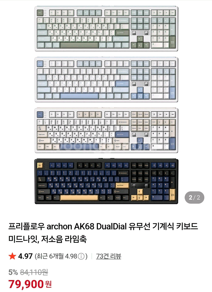 프리플로우 archon AK68 DualDial 유무선 키보드 소다 색상인데 미드나잇 색상으로 교환 구해봅니다 서울 직거래