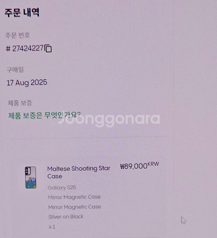 케이스티파이 말티즈 슈팅스타 미러 마그네틱 케이스 갤럭시 S25용입니다. (울트라아님) 25년 8월 17일에 89,000원에 구매했습니다 배송완료 후 실사용은 1달 정도 사용했고, 아직 내년 2개월까지 무상보증 적용 가능합니다 제품 품질 이상으로 as 요청 발생시 메일 요청 등 도움 가능합니다 실사용 1달로 새상품과 같은 상태입니다 MagSafe 호환이 가능하며, 거울 기능이 있어 여성분들께 매우 유용합니다 절반이하 가격으로 네고는 불가합니다 10월까지 안팔리면 아들이 다른 케이스 쓴다고 안쓰게 되면서 파는거라 그냥 소장하고 게시물 내리겠습니다 구매하실분만 연락주세요
