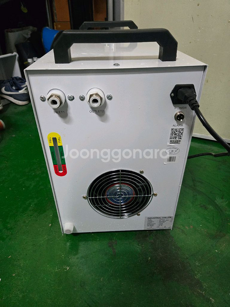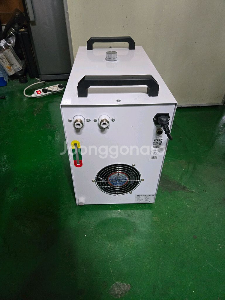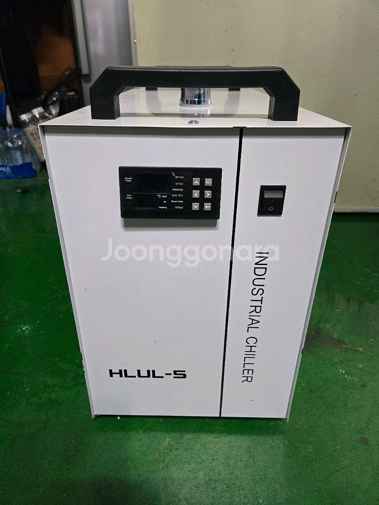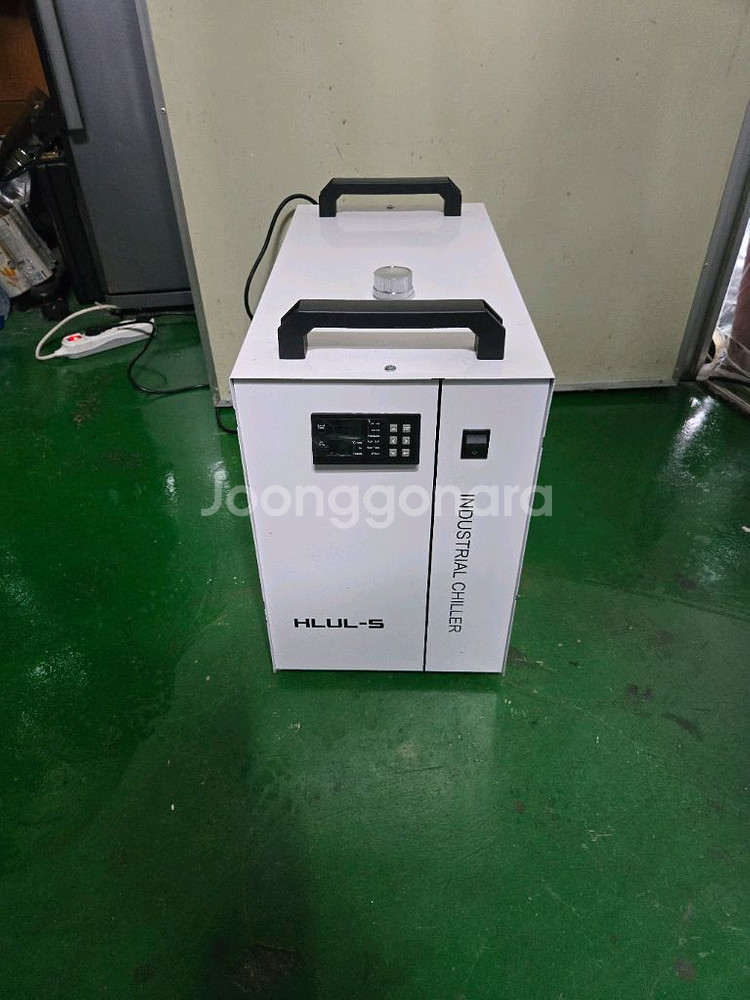 제품명: HLUL-5 산업용 냉각기 (CHILLER) 미사용제품 본체입니다 용도: 최대 5W의 UV 레이저 마킹 기계에 능동 냉각을 제공하여 안정적인 레이저 출력을 보장합니다. 특징: 냉각 용량: 최대 400W 온도 안정성: ±0.2∘Cplus or minus 0.2 raised to the exponent composed with end-exponent cap C ±0.2∘𝐶 디자인: 컴팩트하고 가벼워 이동이 용이하며, 상단에 손잡이가 달려 있습니다. 사진 참고하세요 하남시 서부초교 정문앞 입니다