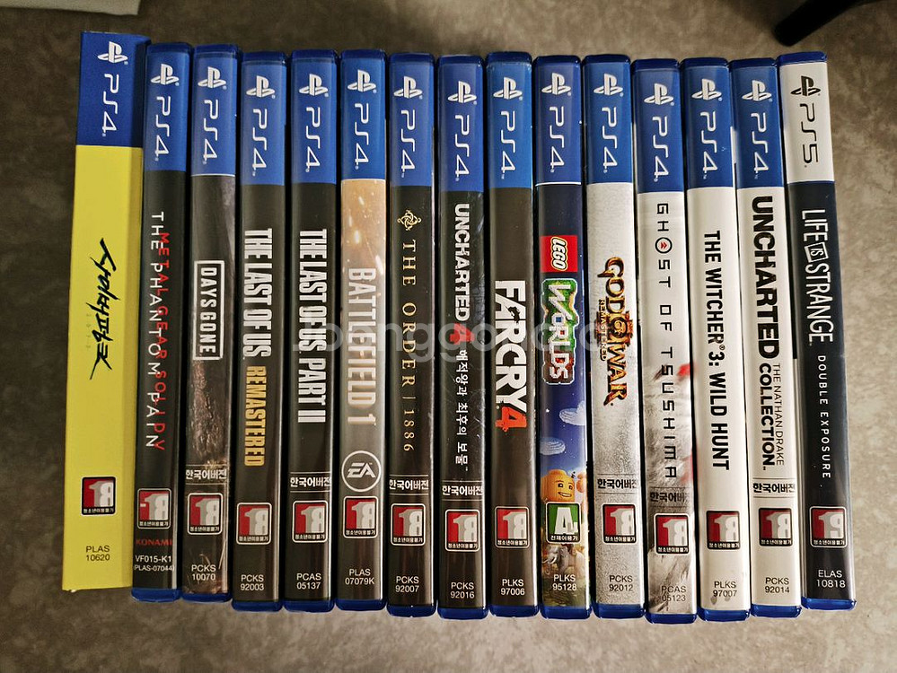 PS4 게임 타이틀 14개 모음입니다 - 언차티드 컬렉션 (1,2,3) - 언차티드4 - 라스트 오브 어스 리마스터 - 라스트 오브 어스2 - 갓 오브 워 3 리마스터 - 사이버펑크 2077 - 더 위쳐3: 와일드 헌트 - 데이즈 곤 - 배틀필드1 - 더 오더: 1886 - 레고 월드 - 파크라이4 - 메탈기어솔리드5 팬텀페인 - (PS5) 라이프 이즈 스트레인지 더블 익스포저 사진의 고스트 오브 쓰시마는 없습니다. 전체적으로 상태 양호합니다. 일괄 15만원에 팝니다. 개별로도 팝니다. (개별 가격 문의, 개별 구매시 최소 2개 이상) 다른 PS4, PS5, 닌텐도 스위치1, 2 게임이랑 교환합니다. (교환은 직거래만, 서울 강동구 둔촌1동)