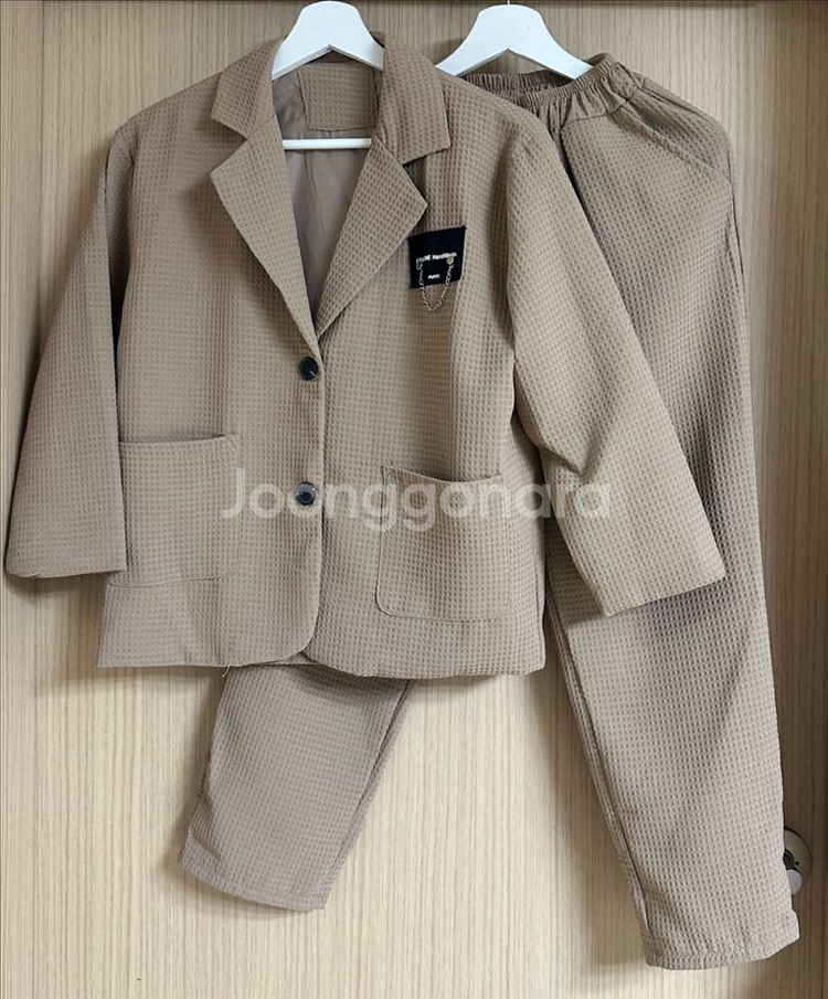 남아셋업 / 색상 진베이지/ 사이즈150 친구결혼식에 한번 입혔습니다 10세아들입혔고 오버핏으로 입혔는데요 바지는 두어번 접었었어요 상태는 한번 잠깐 입히고 세탁 해두었기에 양호합니다 와플조직이지만 찰랑이는 폴리소재라서 무겁지않고 가벼운원단입니다 봄 가을 잘입을 수 있고요 . 아이가 안답답해 했어요 단정하면서 포인트 디테일 있는 옷이라 흔치않아서 구매했어요 상하의 같이코디하셔도 따로 코디하셔도 괜찮아요 실용성있어요 보세150 이라 10세~ 11세맞을거 같구요 상세사이즈 기재할게요 셋업가격 좀 비싸게 주고 샀지만 저렴히 리셀합니다 상세사이즈 자켓 : 어깨-42 / 가슴단면-52 / 팔길이-45 / 총장-61 바지 : 허리단면(밴딩) -25~44 / 엉덩이단면-50 /총장-86 . .