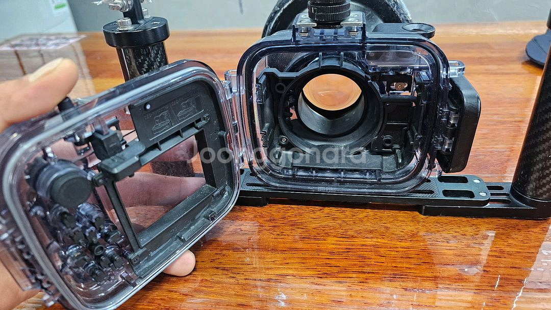 프리.스쿠버다이빙 방수 카메라 소니 rx100 m5 소니 방수하우징 위파인 광각렌즈 렌즈후드 개인 수리 자국 있습니다 사진 품질에는 문제 없습니다 렌즈 후드 새상품 4만2천원 구매해서 교환 하시면됩니다 노리턴 조건 택배거래 가능