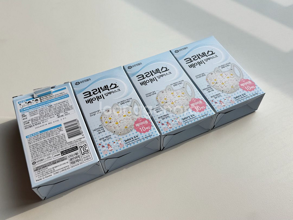 당시에 아기가 마스크 쓰는걸 싫어해서 쓰지 못했어요 테스트 하느라 3개 사용했습니다 제조일은 사진 참고해주세요 편의점 반값택배 가능합니다