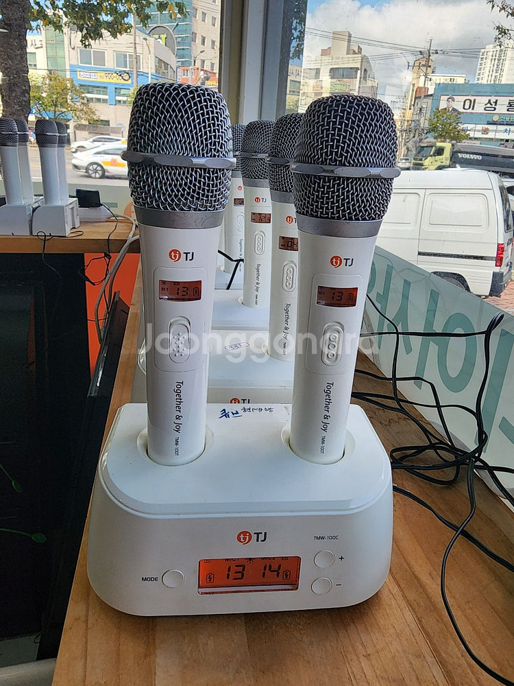 TJ미디어 TMW-100 마이크세트 (흰색) 판매 합니다. 동전노래방 사용하던 제품이고 수리및 점검 완료되었습니다. 상태좋으나 망에 사용중기스는 있습니다. 마이크2개 수신기1개 충전기1개 어댑터2개 세트입니다 12세트 보유중입니다 가격 세트당 220,000 ***-****-**** 연락부탁드립니다.상품 정보 내 개인정보는 자동 보호됩니다. 안심결제로 안전하게 거래하세요.