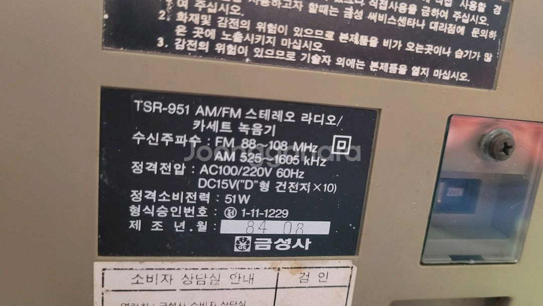 직거래 대전 택배 착불 *** **** **ㅇ* 골드스타 TSR-951 카세트 레트로 빈티지 붐박스 라디오 정상작동 카세트 번튼 살아있고 미세하게 움직임 벨트교체 하면 될듯합니다. 가로 76세티로 거함급입니다. 소리가 매우 좋습니다. 안테나 제치 택배시 파손 면책으로 보내드립니다. 상품 정보 내 개인정보는 자동 보호됩니다. 안심결제로 안전하게 거래하세요.