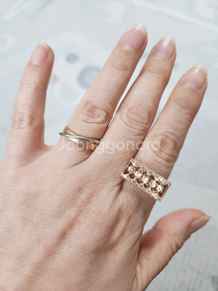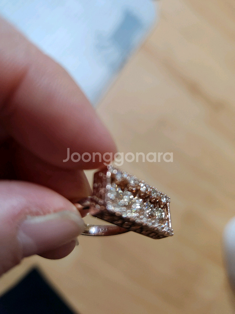 14k 로즈골드 꼬냑다이아 댄싱반지입니다. 전면부 화이트에 가까운 균일한 색감의 올 다이아이고 메인 1부 5ps는 계속 흔들리고 있어 황홀한 빛반사 보여줍니다!!! (14k와 다이아몬드💎 각인 있습니다.) 14k와 다이아 아니면 당연히 환불, 그 외에는 불가이오니 신중히 구매해주세요~