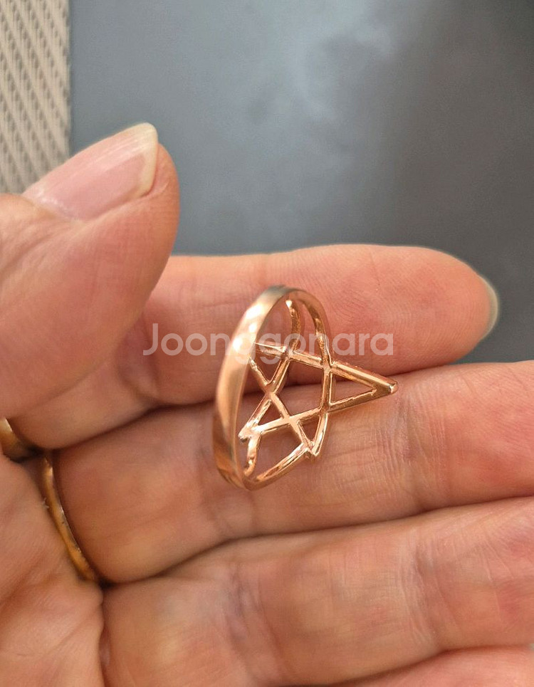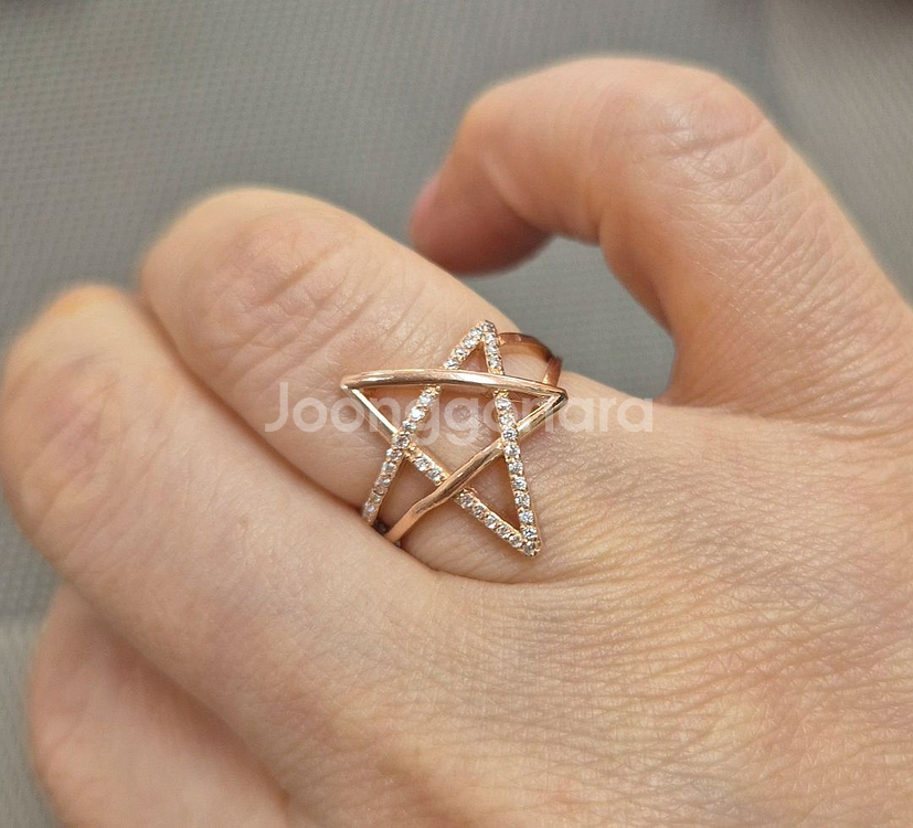 14k 로즈골드 별 반지입니다. 큼지막한 별이 골드와 큐몬드의 조화로움 속에 유니크하게 그려졌네요^^ 2번 큐몬드 없는 민짜~ 2.64g, 신게이지 11호이고 착용하심 세상 시크하고 아름답습니다! 세련된 언냐가 데꼬가세요~^^