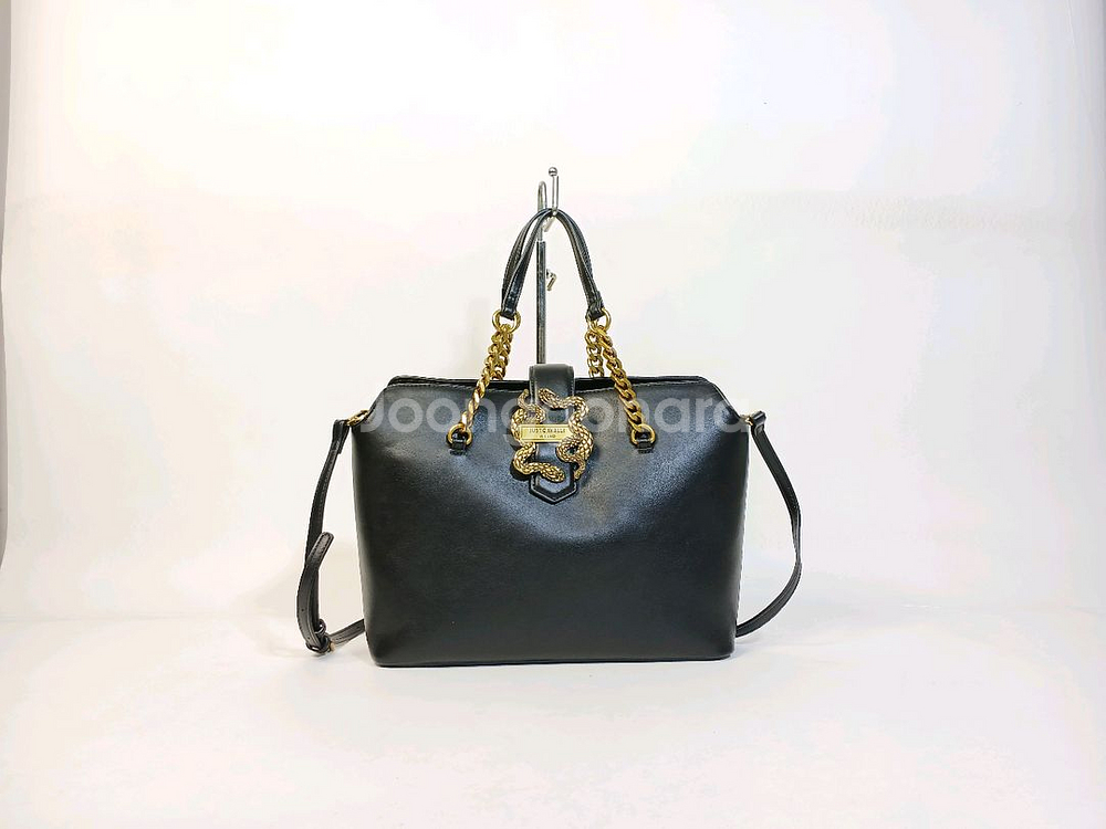 세계적인 명품 브랜드 로베르토 까발리의 세컨드 브랜드 저스트까발리의 검정색 가죽 여성 체인 토트백 입니다. 브론즈메탈 아이코닉 스네이크 브랜드 심볼이 까발리 특유의 화려함과 고급스러움을 잘보여줍니다. 최고급 인조가죽 소재로 아주 가볍고 부드러우며 매끈한 환상적인 이태리 원단입니다. 사이즈는 가로29.5×세로24×폭14 센티입니다. 매장가 70 만원대의 아주 고가 상품입니다. 올해 신상품으로 더스트백, 게런티카드 등 모든 부속품이 완벽하니까 선물용으로도 좋아요. 이태리에서 직수입한 제품이고요 사용하지 않은 새상품입니다.