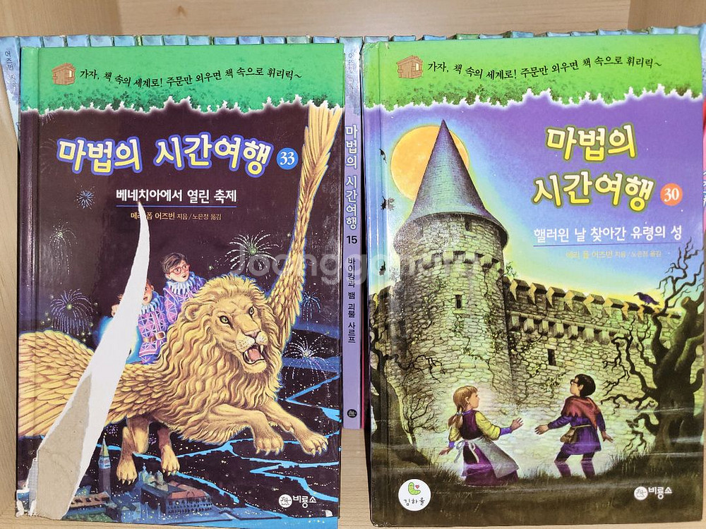 어린이의 상상력과 역사 지식을 동시에 키워주는 인기 시리즈! ✅ 상품 구성 마법의 시간여행 1~30권, 33권 세트 31,32 없습니다 출판사: 비룡소 저자: 메리 폽 오즈번 ✅ 상품 상태 1~29권 전체 깨끗, 낙서·찢김 없음 30권(핼러윈 날~), 33권(베네치아에서 열린 축제) 표지 부분 사용감 있음 → 33권은 겉표지 일부 찢김, 내용은 깨끗 (사진 참고) 내부 페이지: 전체적으로 필기·낙서 없음, 제본 튼튼 오염, 곰팡이, 냄새 없음 아이가 사용 후 보관만 한 책으로, 읽는 데 전혀 지장 없음 초등 저학년부터 중학년까지 꾸준히 사랑받는 스테디셀러입니다. 역사, 과학, 판타지 요소가 조화된 흥미로운 내용으로 아이 독서 입문용으로 정말 좋아요. 책 상태는 실물 그대로이며, 사진 모두 실촬영 원본입니다. 🚚 거래 안내 택포 가격이에요 포장 꼼꼼하게 해서 안전하게 발송드립니다. 💬 문의 빠른 답변 원하시면 채팅 or 문자 주세요 사진 추가 요청 가능 세트 단위 판매 원하며, 일부 낱권 분할은 불가합니다. 📖 정가 대비 70% 이상 할인, 아이 독서 습관 잡아주기 좋은 시리즈! 빠르게 문의 주시는 분께 우선 거래드립니다.