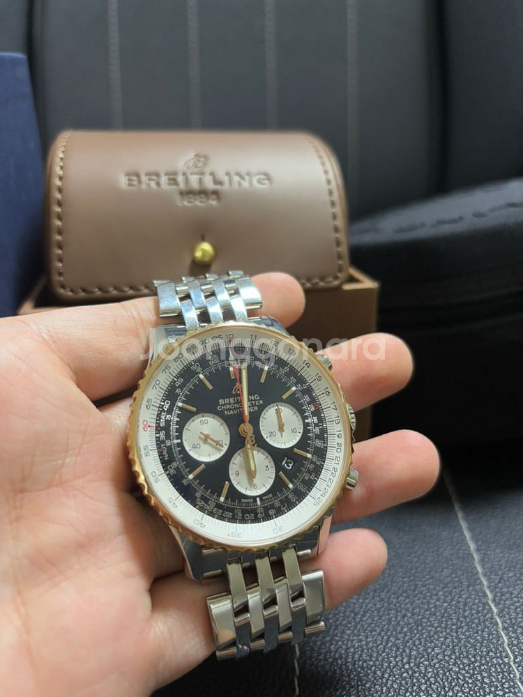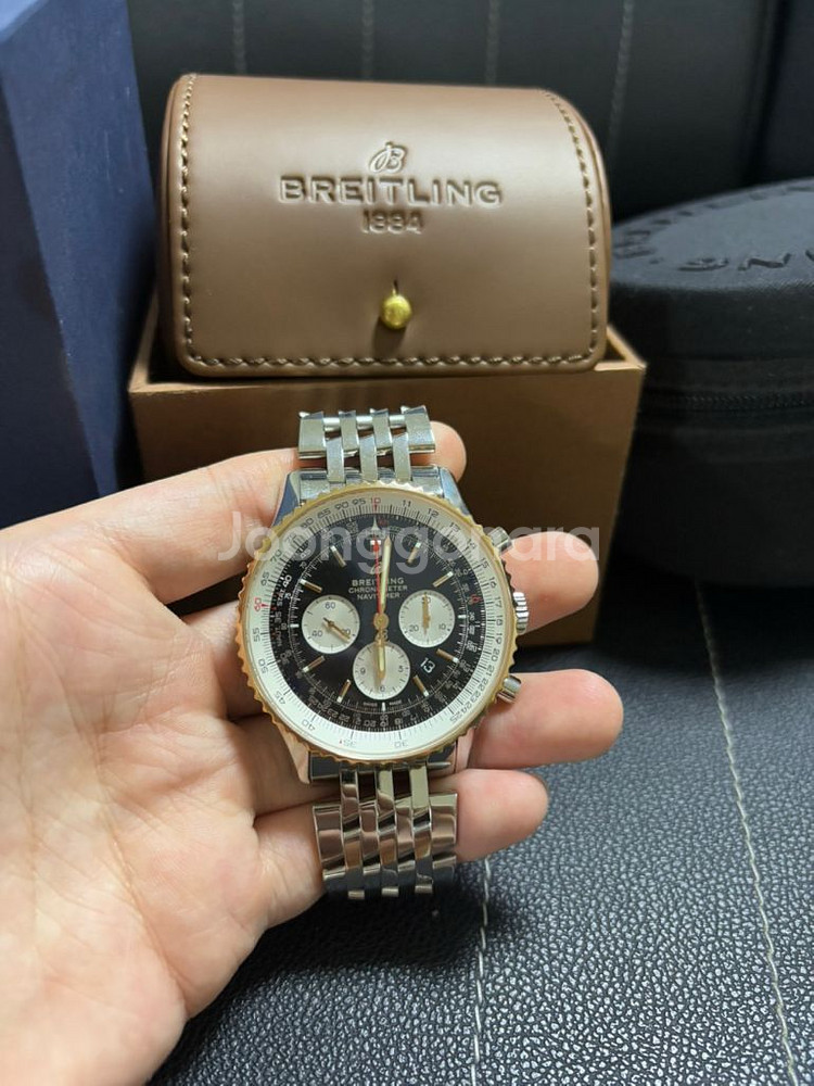 브라이틀링 내비타이머 B01 콤비 판매합니다. 흔한 41~43mm아닌 46mm 일반 스틸이아닌 보기드문 18k 베젤 크로노 팬더 입니다. 상태 최상 21년식 보증서포함 풀박스이며 26년까지 보증연장 해두었습니다. 추가금 오가는 시계교환 환영입니다. 업자아닙니다 시계 좋아하는 개인입니다. 돈급한것 없고 찔러보기, 무리한 네고하시는 분과 거래하지 않습니다. 서로의 시간 존중하는 매너있는 분과 거래 원합니다. 직거래는 대구입니다 거래시 예약금 10만원 받습니다 순금 교환가능합니다.