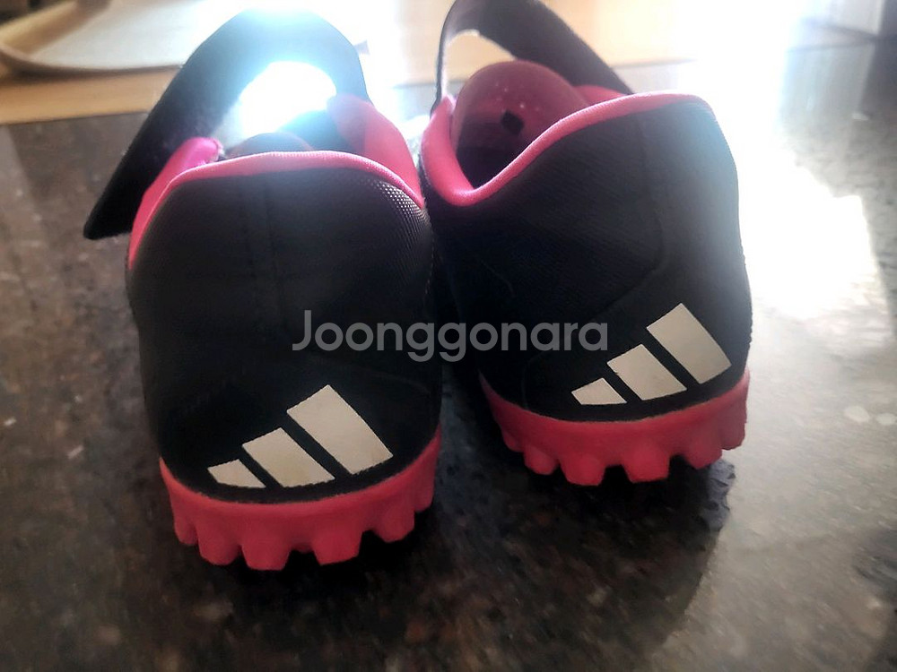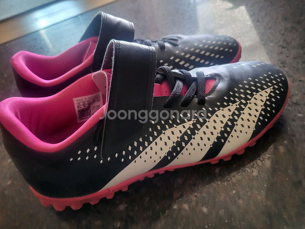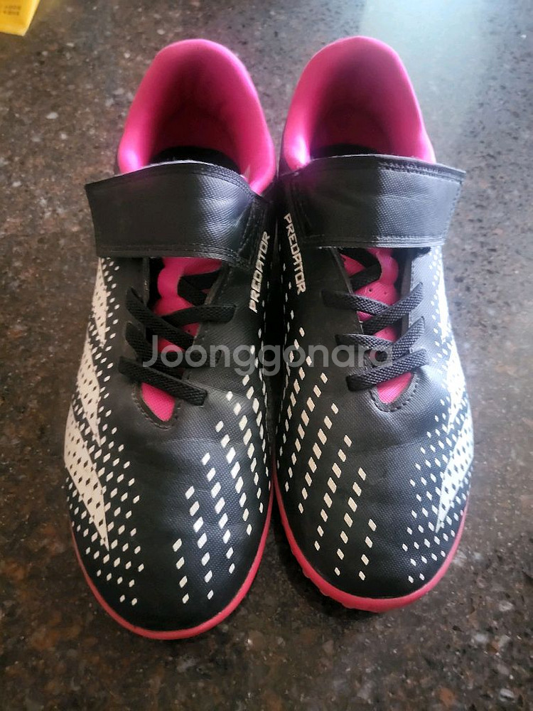 아디다스 프레데터 블랙/핑크 축구화 240 사이즈입니다. TF 스터드 아웃솔이 적용되어 안정적인 접지력을 제공합니다. 핑크색 포인트가 들어가서 필드에서 돋보일 수 있습니다. 별도 문의 없으시면 바로 안전결제 부탁드려요! 사용감 크게 많지않아요 축구화는 한사이즈 업해서 구매하세요 다산아디다스 구매정품