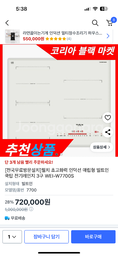 웰치 3구 인덕션 WEI-W7700S 모델입니다 - 제조년월은 25년 5월입니다 - 소비전력은 3500W입니다 빠르고 강력한 화력으로 요리가 가능합니다 빌트인 인덕션 좌측 상단 모서리 파손 있습니다 작동 잘됩니다 용인 모현 갈담리 직거래 가능 타지역 택배 택배 발송시 파손면책 자동 동의