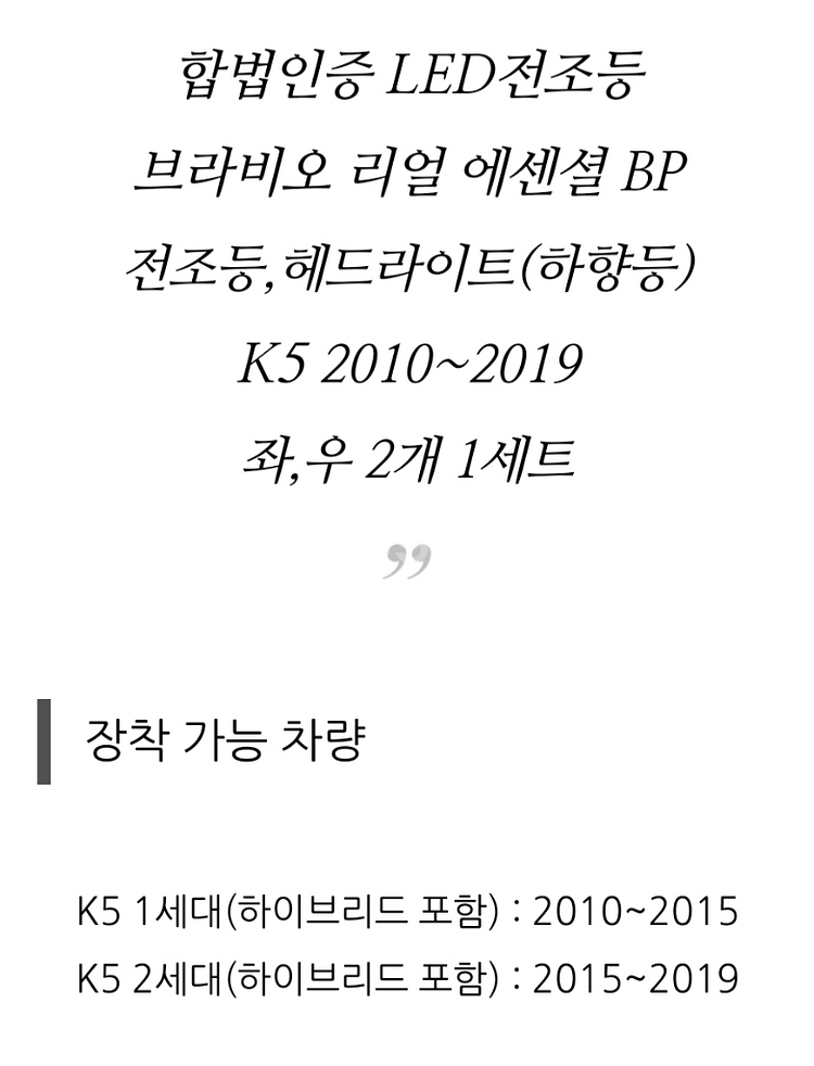 브라비오 H7-A K5 1세대 2010-2013년식 호환 LED 전조등 헤드라이트 BP 모델입니다. 네이버 참고 - 모델명: BL-8G12V-BP - 정격전력: 25W - 밝기: 1850LM - 색온도: 6000-6500K