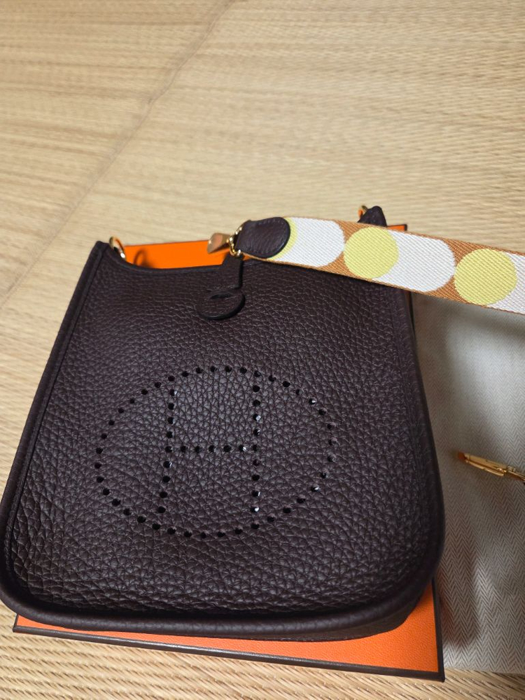 에르메스 에블린 미니백 입니다. 차분하고 고급스러운 루즈셀리에 색상입니다. 스트랩이 플래인하지 않고 귀여운 패턴이 들어가 있어 희소합니다. 이 상글 스트랩만 따로 구매하면 150만원 정도 하죠? 마지막 사진처럼 스트랩 하드웨어의 실링도 제거한적 없는 완벽한 새상품입니다. 몇번 들다가 새상품으로 내놓고 그럴 수 없는 고리 한번 체결하지 않은 컨디션입니다. 23년 면세점 구매로 세금 납부한 후 보관만 하다가 더 좋은 주인을 찾아가라고 내놓습니다. 구성품: 구매 시 풀셋(가방, 박스, 스트랩, 더스트백2개,북렛), 에르메스 쇼핑백 직거래만 합니다. 펑방지 예약금5만원 있고, 약속 정한 후 구매자 변심 취소시 돌려드리지 않으니 신중한 연락부탁드립니다. 3자 대면 사기 방지를 위해, 구매 시 예약금 입금계좌명= 구매자명이 동일한지 확인해드립니다. 에누리문의나 일방적인 가격제시는 받지 않습니다. 달러로 사고 관세 내서 구매가가 높아요. ㅜㅜ 대신 컨디션과 출처가 확실하니 선물용으로 추천드립니다!