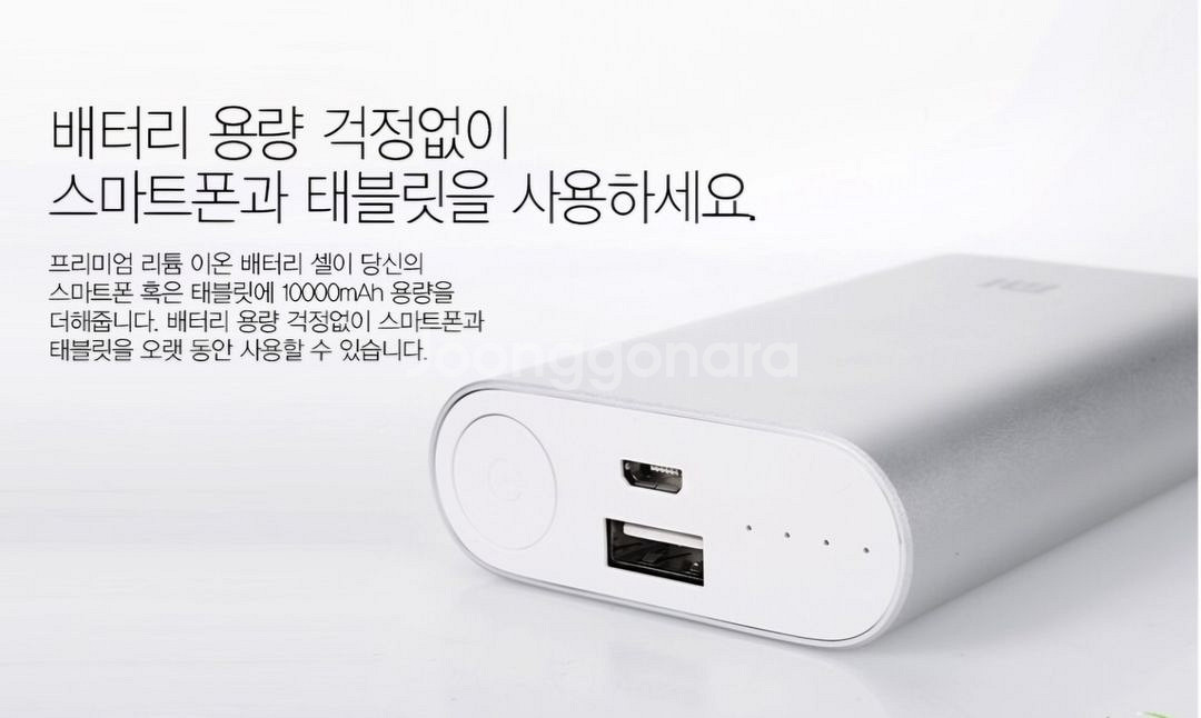 샤오미 10000mAh 보조배터리 판매합니다 - 알루미늄 케이스로 튼튼해요 - 2.1A 충전 지원으로 빠르게 충전 가능 - 배터리 잔량은 LED로 확인! - 크기는 6.04 x 9.1 x 2.2 cm, 무게는 207g으로 휴대하기 좋아요 박스는 없고, 사진에 보이는 구성품이 전부입니다. 주로 여행갈때만 사용했었고, 사진처럼 생활기스가 좀 있는 편이니 참고해서 연락주세요. * 네고는 정중히 사양합니다. 네고 해드리고 진상을 만난 경험이 상대적으로 많아, 더이상 받지 않습니다. * 팔리지 않으면 가격 계속 내리고 있으니, 원하시는 가격될때까지 기다려주세요. * 중고라서 물건에 큰 하자 없으면 교환, 환불은 어려운 점 이해 부탁드립니다. * 사이즈 실측은 상품의 특성 및 측정방식에 따라 오차가 발생할 수 있으니 신중하게 보시고 연락주세요. * 일반/반값 택배가능 * 직거래: 제기동 성당